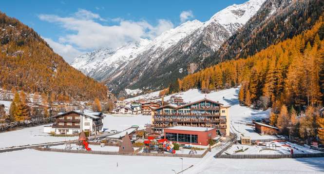 This lovely hotel is situated in a quiet part of town, 10 minutes from the slopes on the bus. It has a wellness area with sauna, fitness room, bar with lounge and pool table, a sun terrace and a kids' play area.
